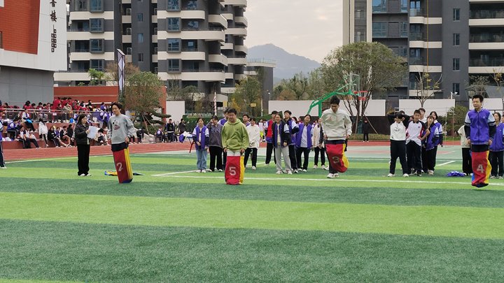 鉛球、跳遠(yuǎn)、袋鼠跳、集體繩,同舟共濟(jì),操場(chǎng)各處氣氛熱烈......