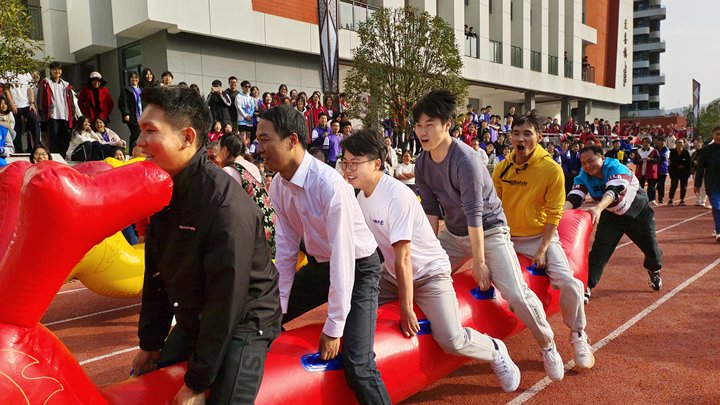 本次體藝節(jié)老師們也參與其中,30米繞桿接力、旱龍舟,有趣的活動(dòng)項(xiàng)目引得大家大笑不止。尤其是旱龍舟,出現(xiàn)了極富戲劇性的一幕,裁判長(zhǎng)誤將“記者”撞倒在地,“記者”順勢(shì)坐下拍照,現(xiàn)場(chǎng)掀起出一浪浪的歡呼,卷過(guò)龍舟,推著龍舟不斷往前行去,濃濃的師生情融進(jìn)了山呼般的“加油”聲里。