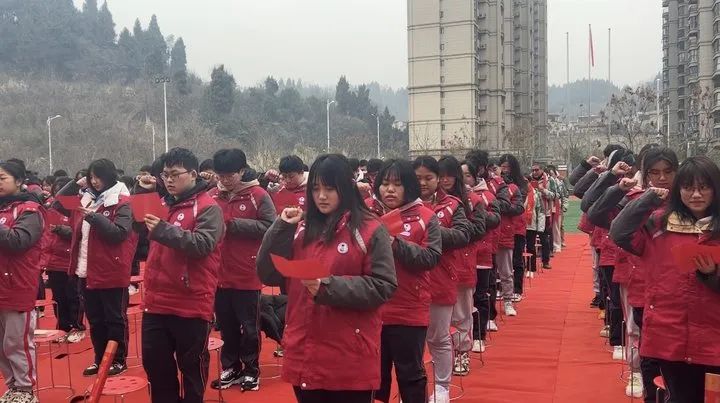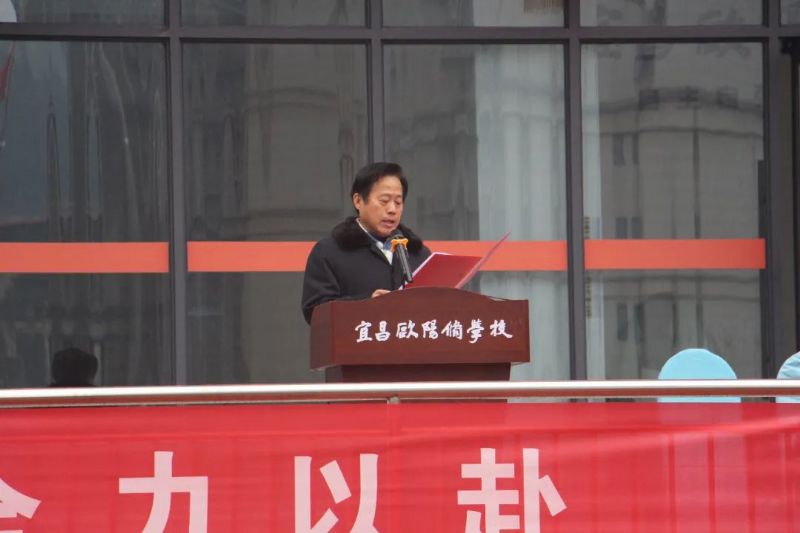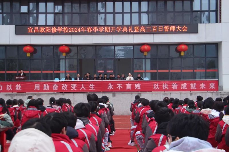 宜昌歐陽修學(xué)校春季學(xué)期開學(xué)典禮暨高三百日誓師大會在操場召開。