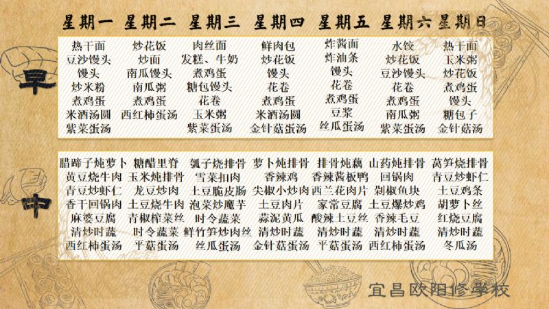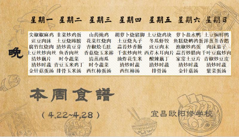 宜昌歐陽(yáng)修學(xué)校每周食譜(4月22日至4月28日)