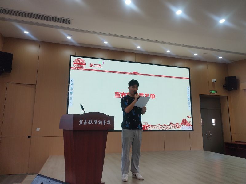 第二項(xiàng),團(tuán)委副書記馮楨老師宣布新團(tuán)員名單。