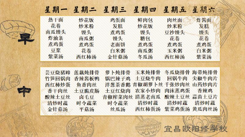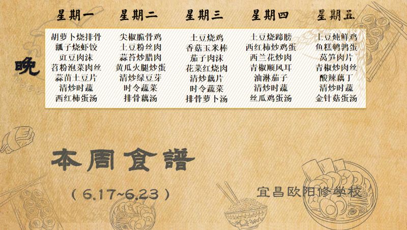 宜昌歐陽修學(xué)校每周食譜(6月17日至6月23日)