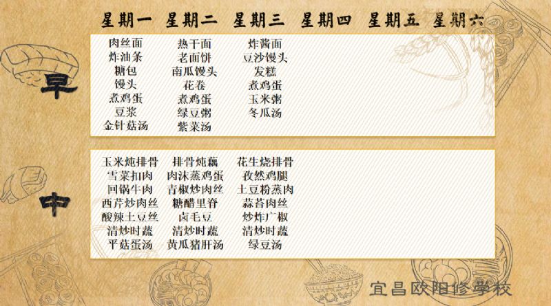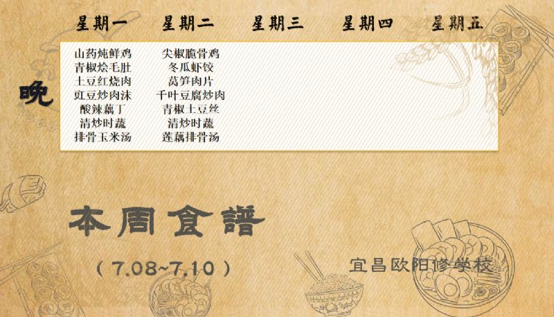 宜昌歐陽修學校每周食譜(7月8日至7月10日)