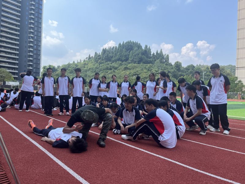 訓(xùn)練場地上,各班教官組織同學們進行了創(chuàng)傷救護培訓(xùn),細心地為學生們演示了“頭部帽式包扎”的正確包扎方法。在之后的實踐活動中,同學們互相扮演“傷者”和“救援者”,積極參與實操訓(xùn)練,仔細領(lǐng)會每一步要領(lǐng)。通過實際操作的訓(xùn)練,學生進一步地加深了對包扎技巧的理解。軍訓(xùn)不僅是軍訓(xùn)素質(zhì)的訓(xùn)練,更是生命安全的重要環(huán)節(jié)。此次培訓(xùn),學校將安全急救知識融入軍訓(xùn)中,達到全員普及效果,提高了學生的自救、互救能力和安全救護意識。