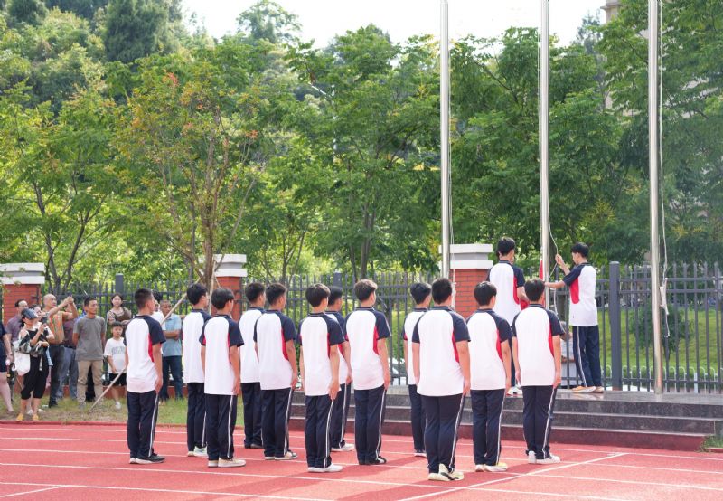 秋風(fēng)獵獵,紅旗招展。隨著教官的指揮口令,每一個(gè)班級(jí)都拿出了最好的狀態(tài),向?qū)W校展示了他們?cè)谶^(guò)去六天中認(rèn)真訓(xùn)練的成果。驕陽(yáng)下的同學(xué)們身姿挺拔、隊(duì)列整齊、動(dòng)作規(guī)范,充分體現(xiàn)了高質(zhì)量的軍訓(xùn)成果,展現(xiàn)了奮發(fā)向上、勇于吃苦、積極向上的精神風(fēng)貌。經(jīng)過(guò)軍訓(xùn)洗禮,一張張?jiān)?jīng)稚嫩的臉上也多了幾分堅(jiān)毅與果敢。