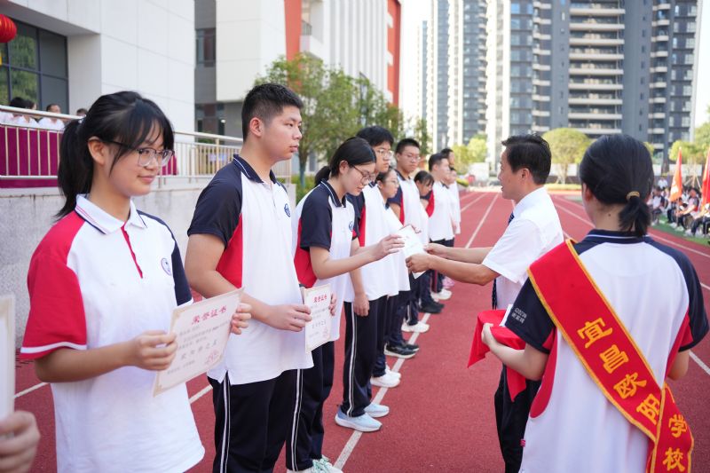 圖為陶三發(fā)校長為歐陽修之星頒獎