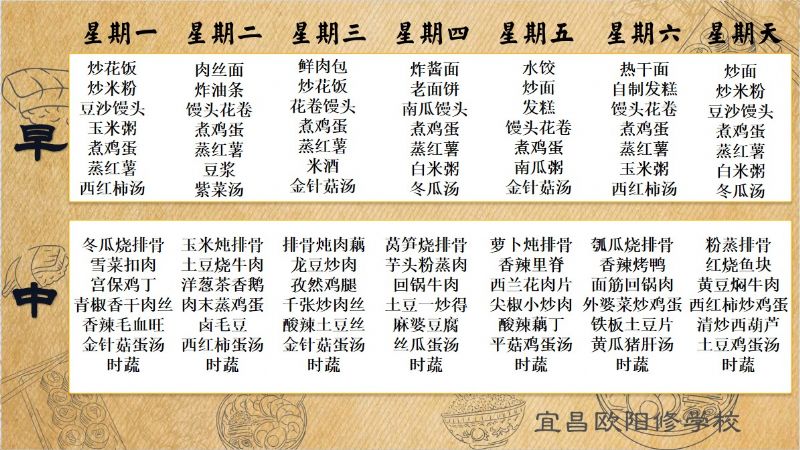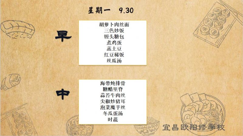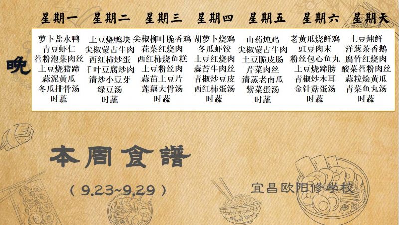 宜昌歐陽(yáng)修學(xué)校每周食譜(9月23日至9月30日)