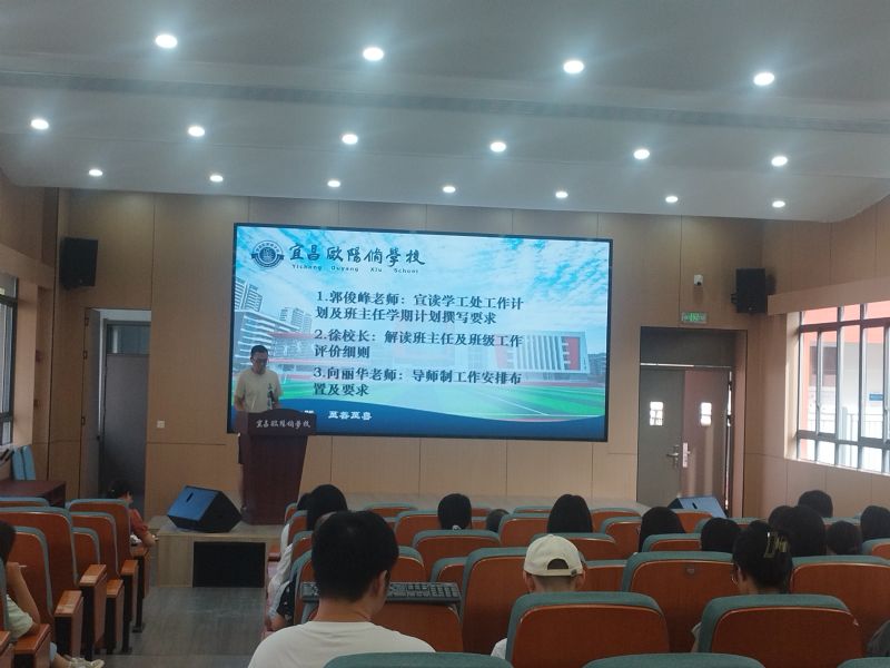 會(huì)議分為三個(gè)議程,首先學(xué)工處郭俊峰老師宣讀了學(xué)工處工作計(jì)劃并強(qiáng)調(diào)了班主任學(xué)期計(jì)劃的撰寫要求。