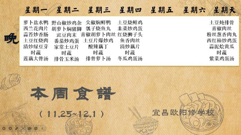 宜昌歐陽(yáng)修學(xué)校每周食譜(11月25日至12月1日)
