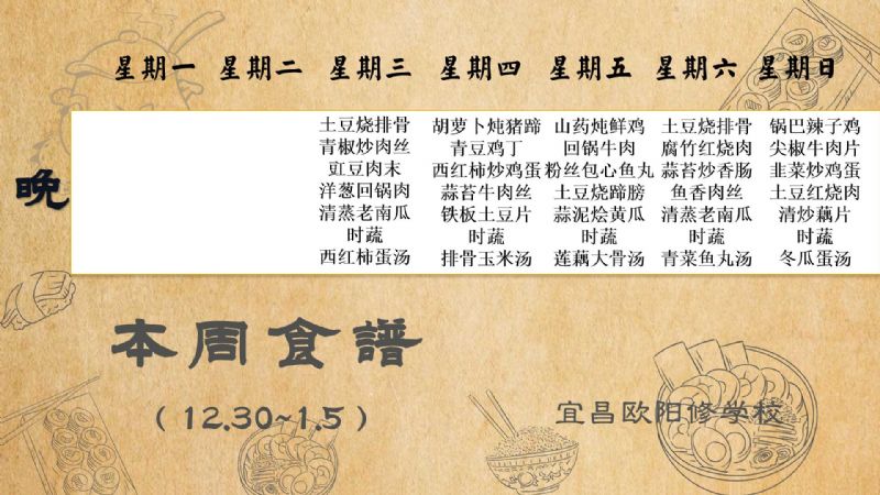 宜昌歐陽修學(xué)校每周食譜(12月30日至1月5日)