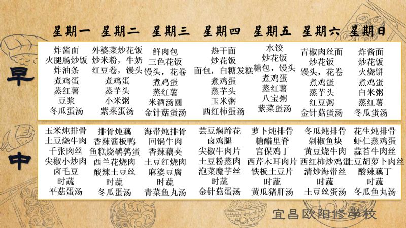 宜昌歐陽修學(xué)校每周食譜(3月10日至3月16日)