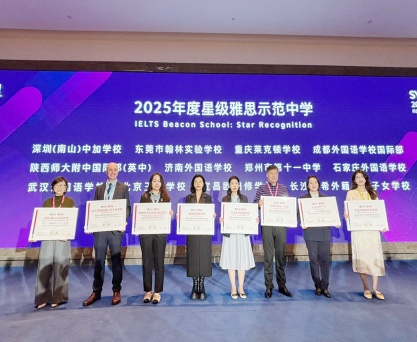 4月9日,宜昌歐陽修學校獲得BritishCouncil英國文化教育協(xié)會“星級雅思示范中學”授牌。我校國際高中負責人李翠銀主任代表學校領(lǐng)獎。