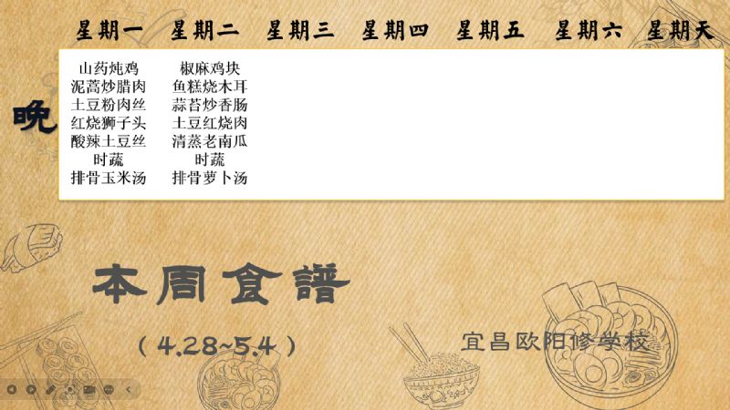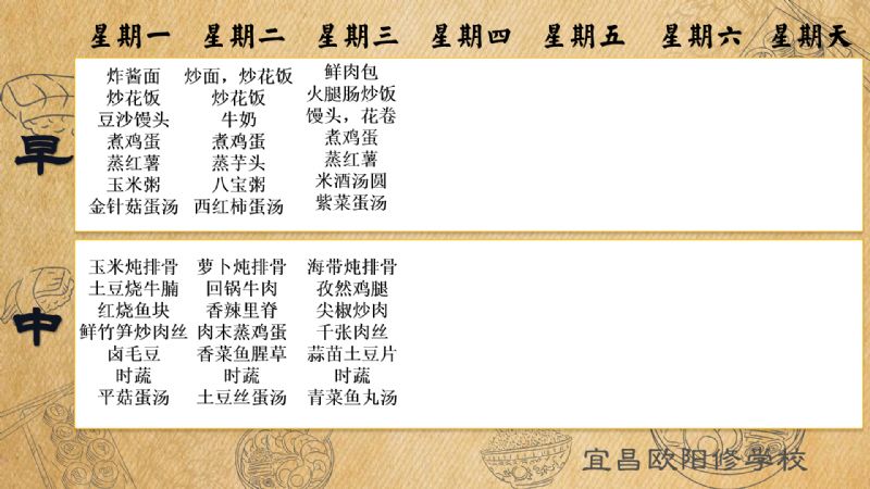 宜昌歐陽修學(xué)校每周食譜(4月28日至5月4日)