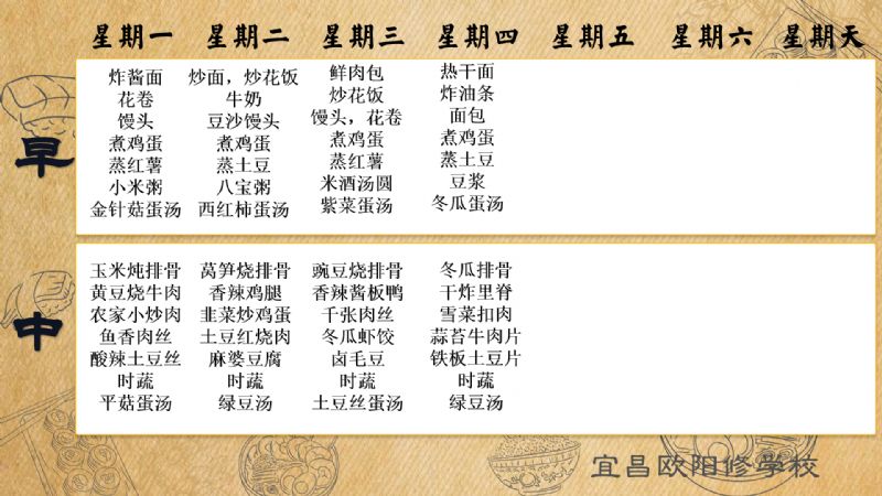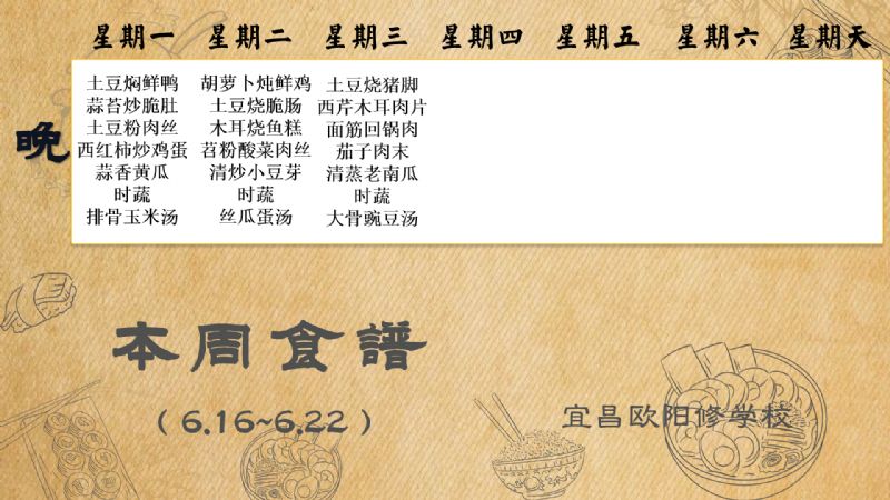 宜昌歐陽(yáng)修學(xué)校每周食譜(6月16日至6月22日)