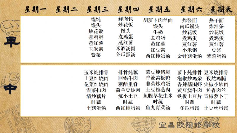 宜昌歐陽修學(xué)校每周食譜(10月8日-10月12日)