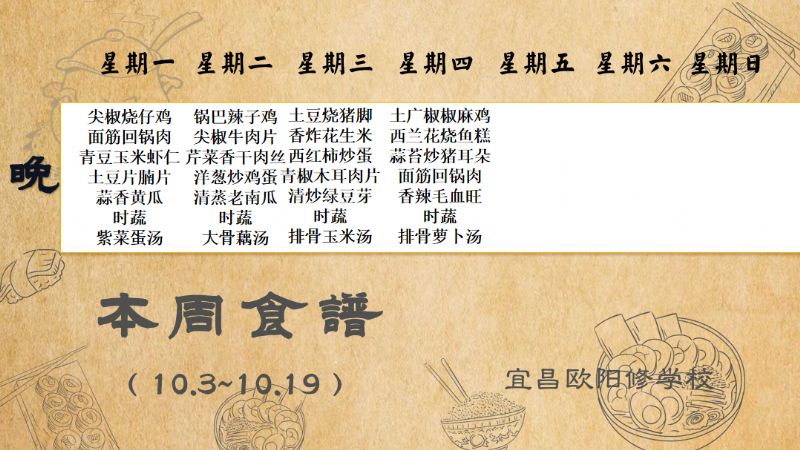 宜昌歐陽修學(xué)校每周食譜(10月13日-10月19日)